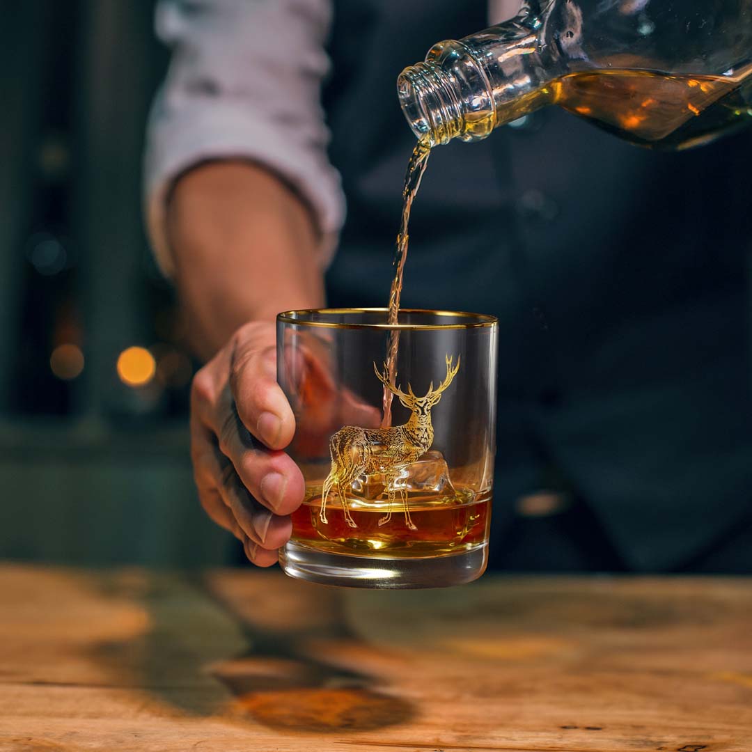 The exclusive Buck and Bull design features real precious metal gold that adds a touch of elegance to any setting while sparking conversation amongst guests. Not only are these glasses visually stunning but also functional, balanced and sturdy, making them easy to hold and enjoy your drink without any spills. The heavy base and chip-free rim ensure that these glasses are both durable and practical, while the lead-free materials make them safe to use. We recommend handwashing these glasses to keep them in pristine condition as the heat and harshness of a dishwasher may, over time, reduce the luster of the golden accents.